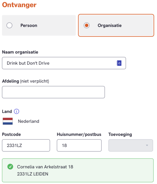 Stap 3: Kies optie ”klein pakket”, ”met track & trace”, ”op adres ontvanger” en dan knop ”verder”